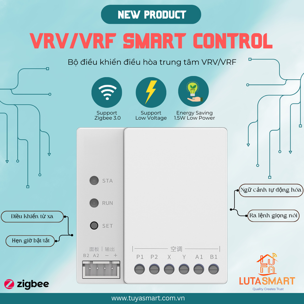 Chính vì vậy, chúng tôi muốn giới thiệu đến khách hàng một giải pháp tối ưu: Bộ điều khiển điều hòa trung tâm VRV, VRF thông minh Zigbee Tuya. Đây là một sản phẩm tích hợp công nghệ hiện đại, giúp người dùng có thể điều khiển và quản lý hệ thống điều hòa một cách dễ dàng và hiệu quả.