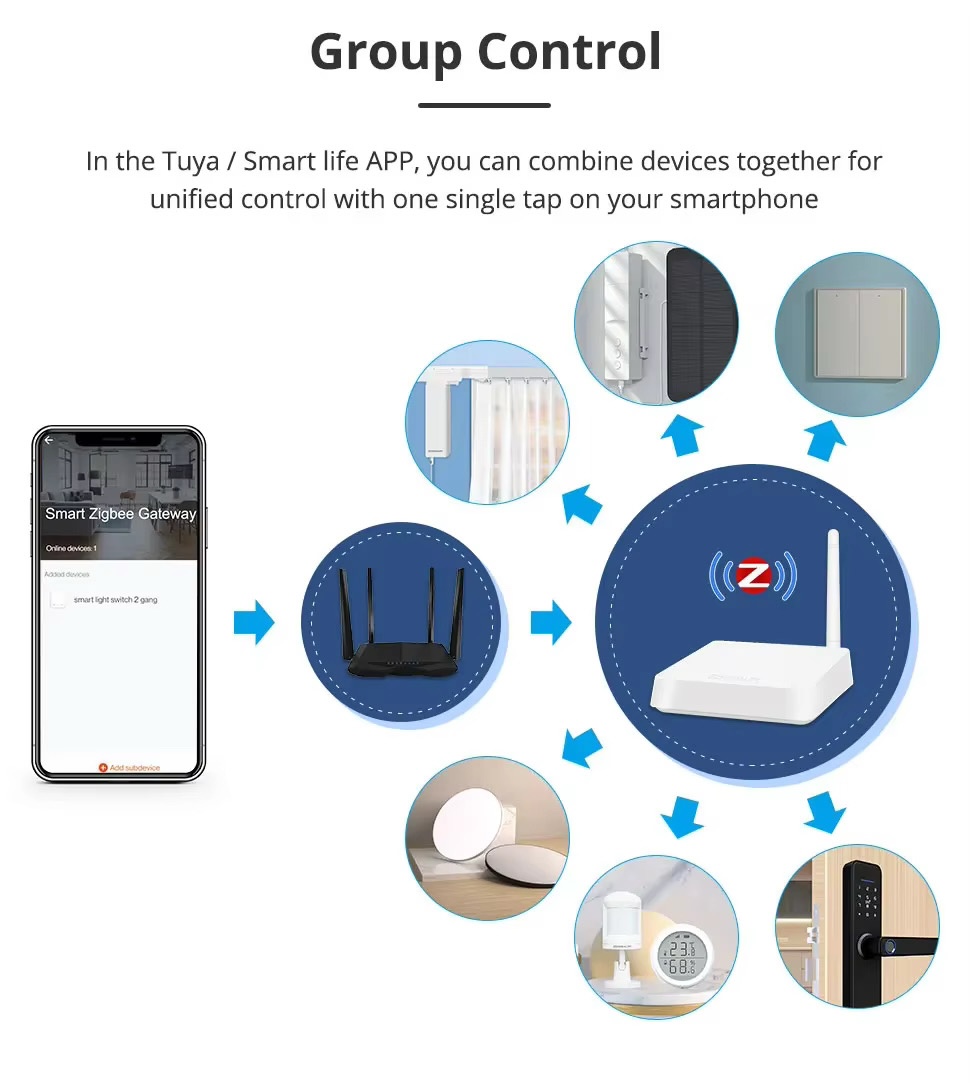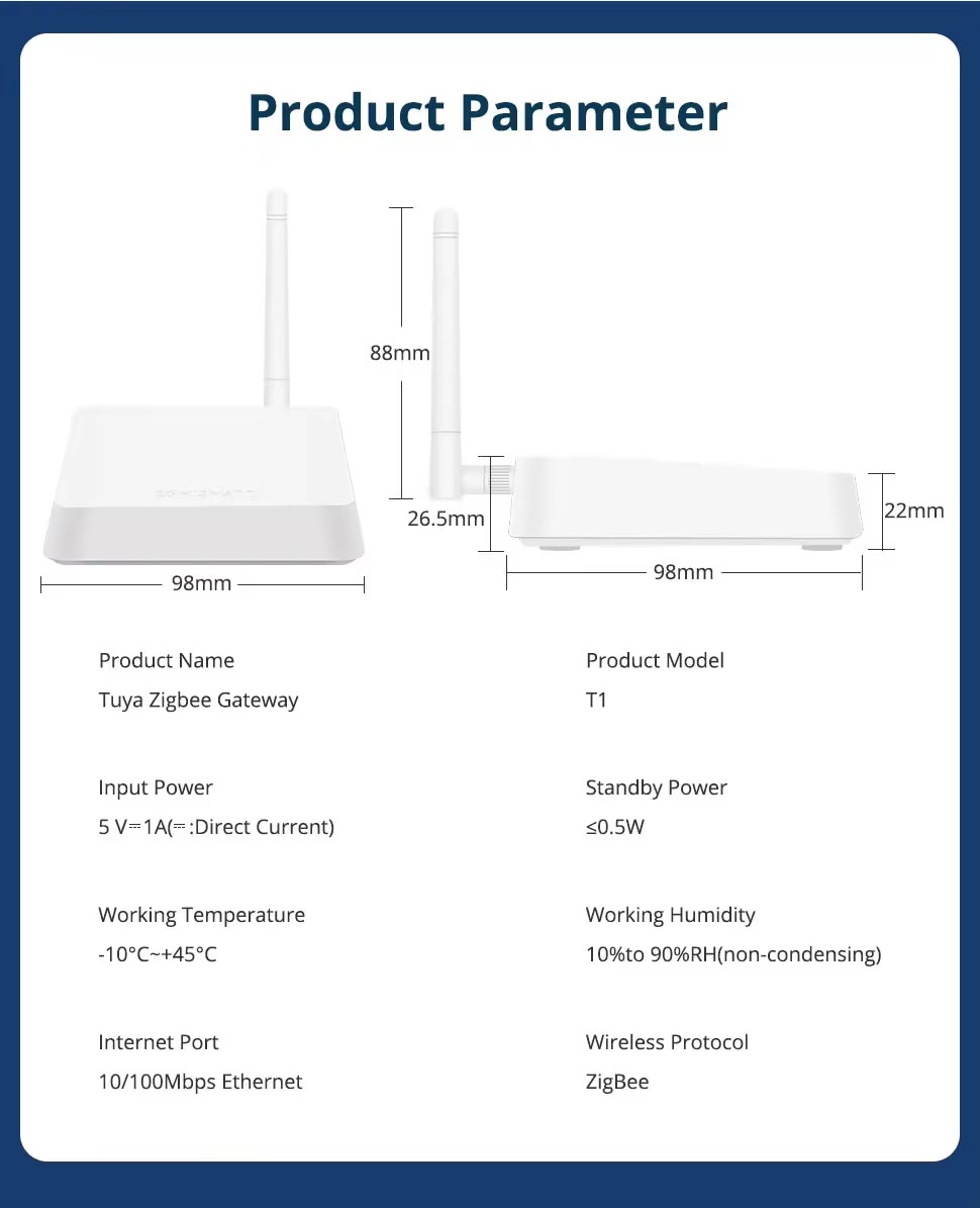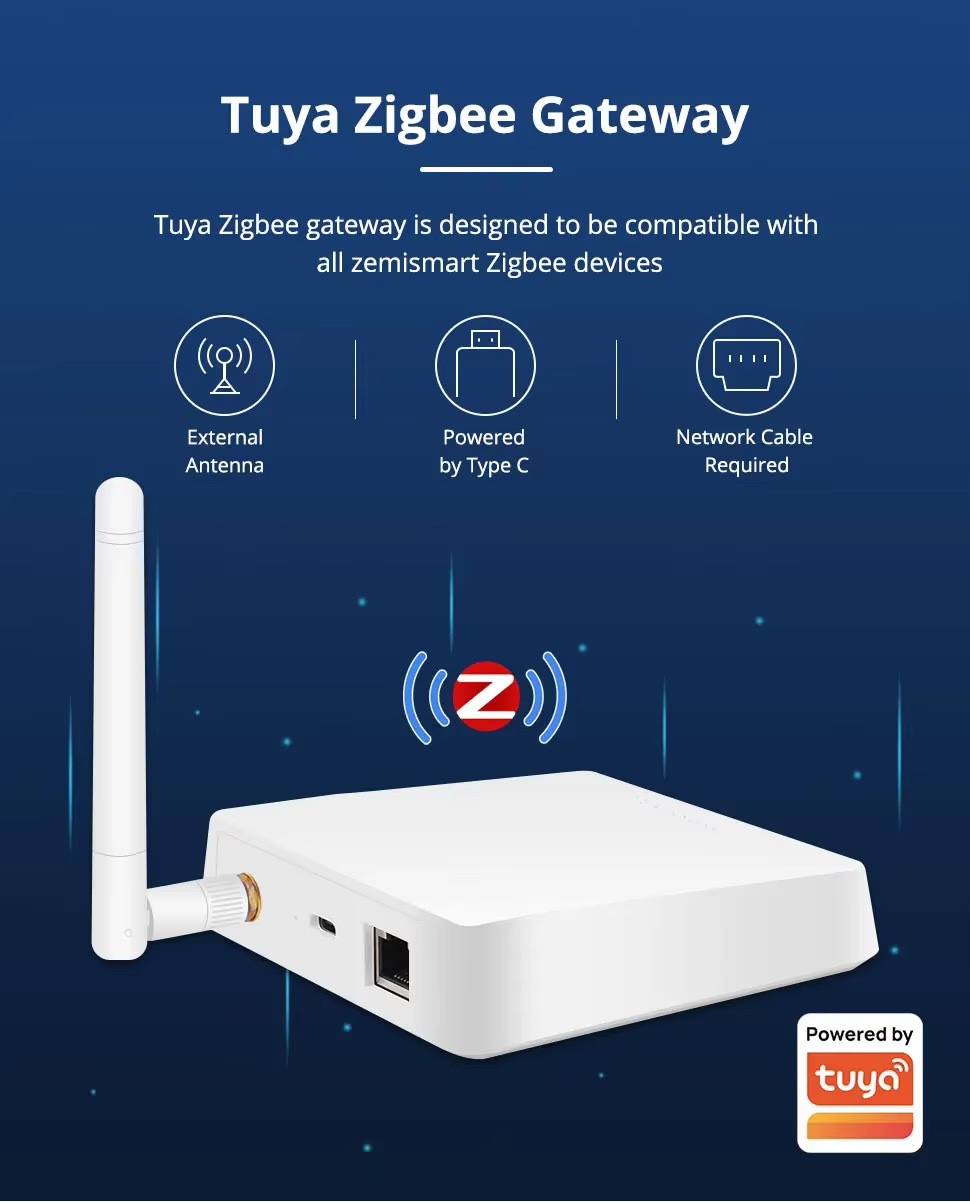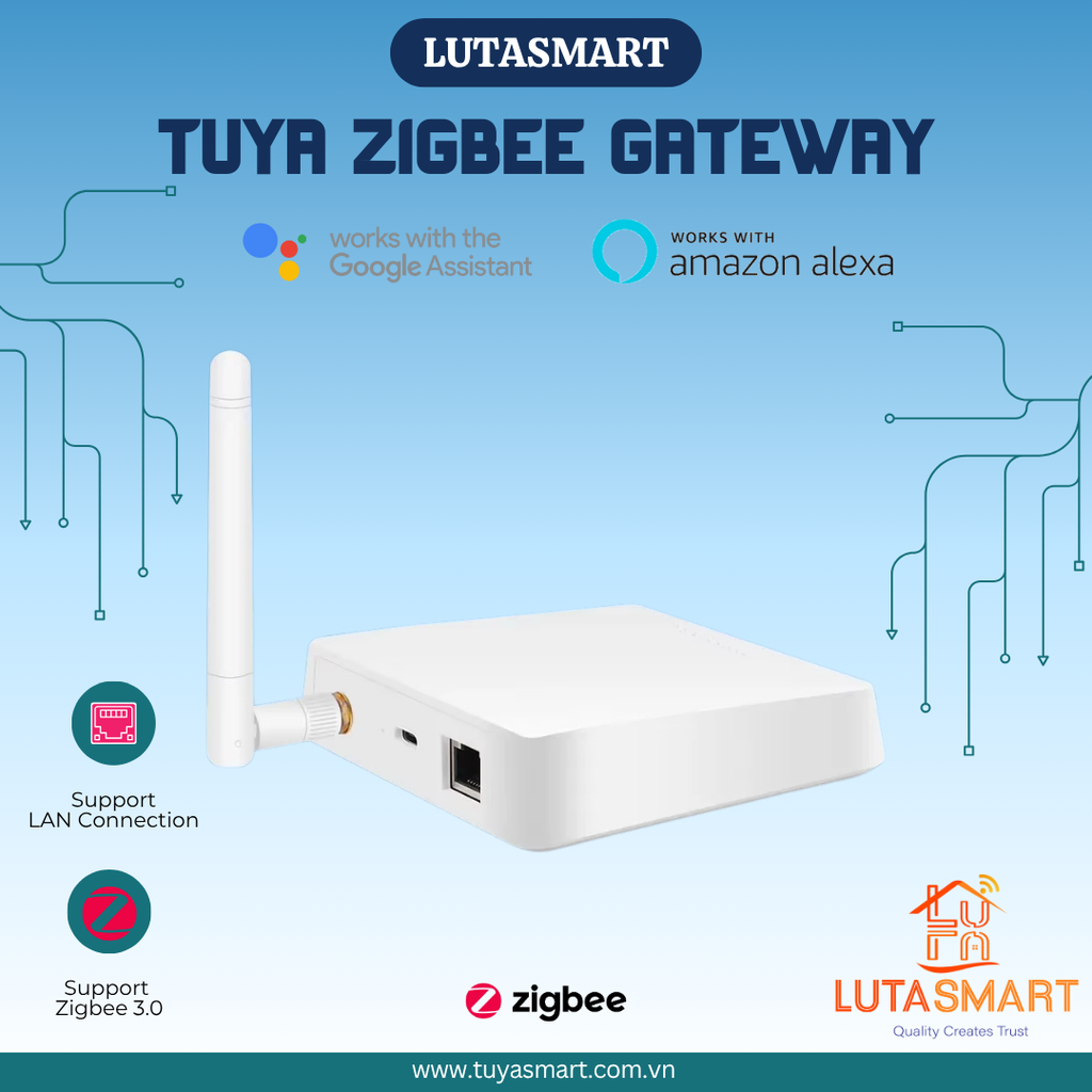 Hub Zigbee Tuya kết nối các thiết bị thông minh sử dụng sóng zigbee như công tắc, cảm biến, ổ cắm, nút bấm không dây,...