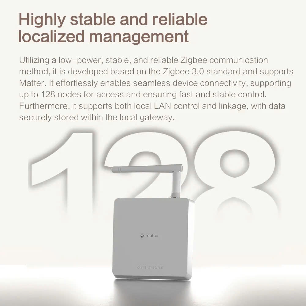 - Hỗ trợ đa giao thức: Hub M6 hỗ trợ tiêu chuẩn Tuya Zigbee. Để làm cho nhiều thiết bị hơn hoạt động trên hệ thống được chứng nhận Matter. (Cần có bộ định tuyến tốt hoặc cân bằng tải cho hệ thống Matter vì Hub Matter yêu cầu độ ổn định của mạng internet ở mức cao.)