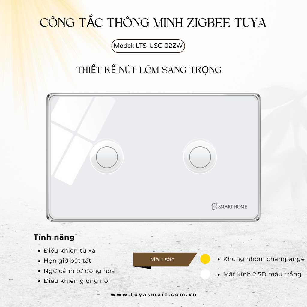 - Tên sản phẩm: Công tắc thông minh LUTA SMART nút lõm Zigbee - Tuya