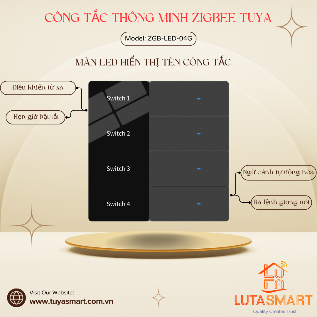 CÔNG TẮC THÔNG MINH ZIGBEE TUYA MÀN HÌNH LED HIỂN THỊ TÊN CÔNG TẮC