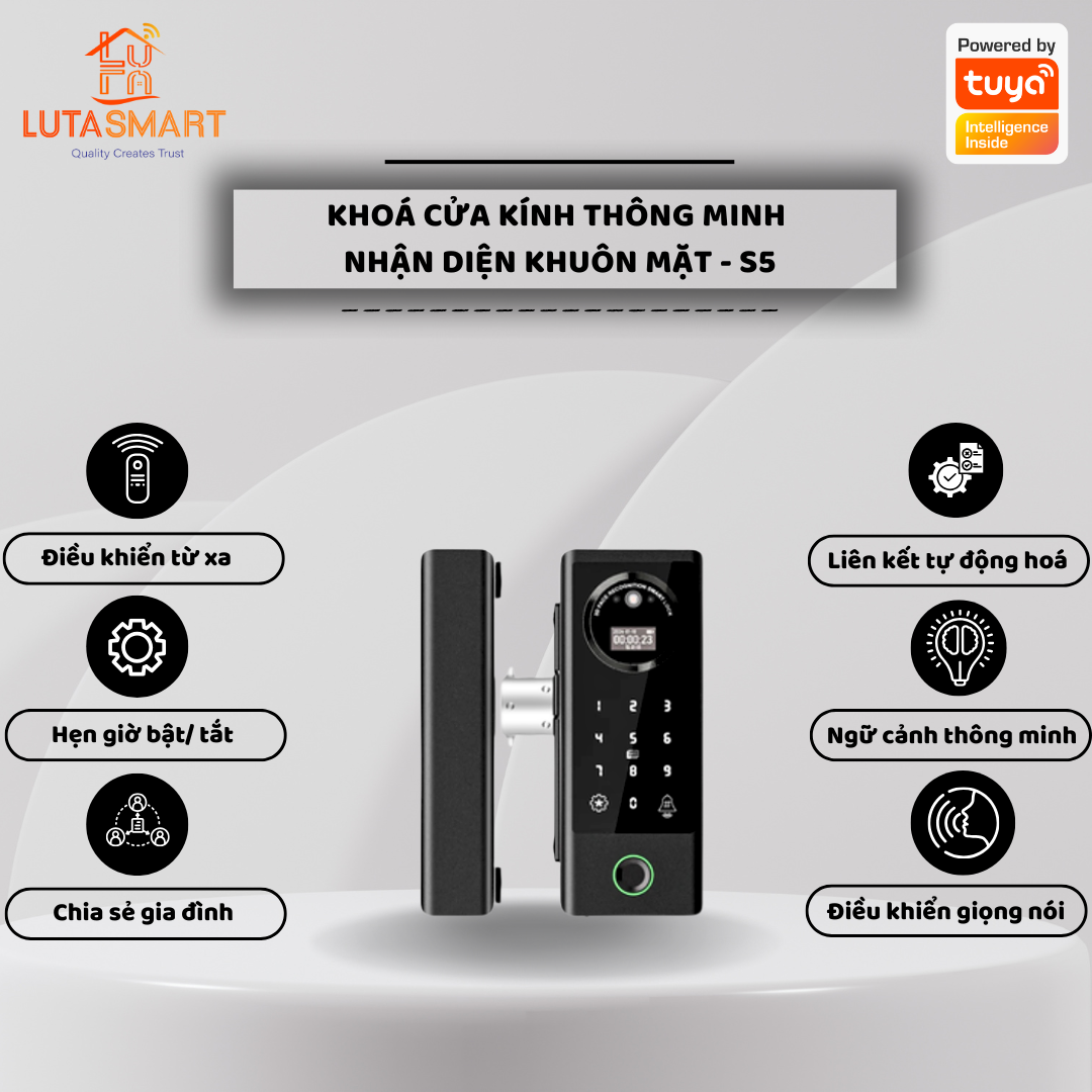 Smart Lock S5 FaceID Glass là loại khóa được điều khiển bằng các phương thức thông minh như: