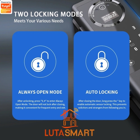 Khóa thông minh Tuya hỗ trợ nhiều cách mở khóa để mang lại sự tiện lợi và linh hoạt cho người dùng: