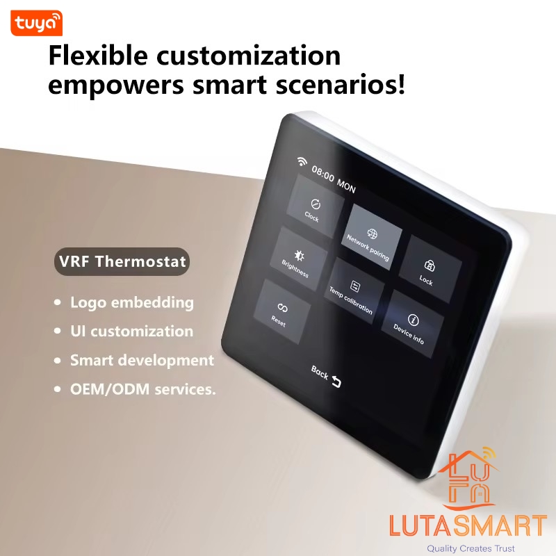Màn hình điều khiển điều hòa trung tâm VRV/VRF - Zigbee Tuya là một thiết bị hiện đại, được thiết kế để mang lại giải pháp kiểm soát nhiệt độ hệ thống điều hòa trung tâm một cách tối ưu cho không gian sống và làm việc của bạn.