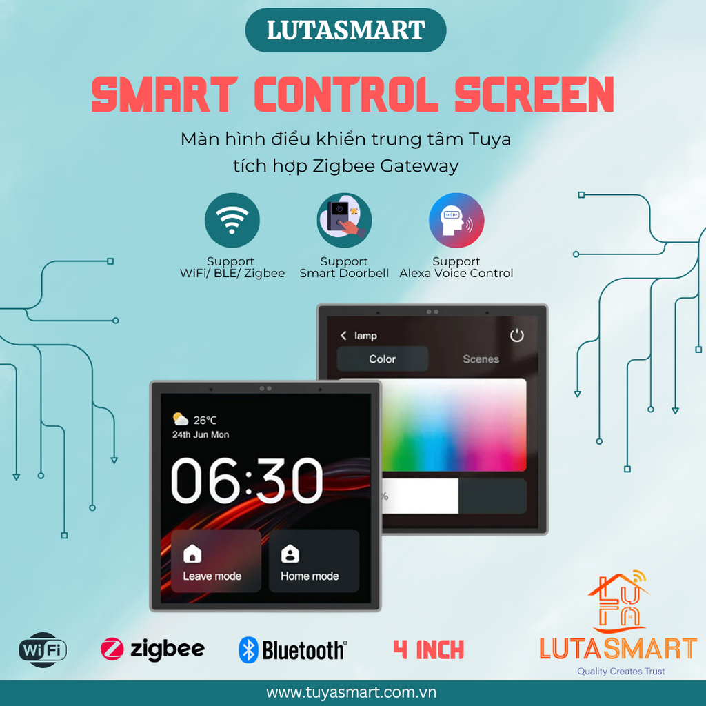 Màn hình điều khiển trung tâm tích hợp trợ lý ảo Alexa - Hub Zigbee - Tuya