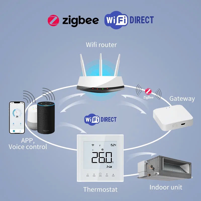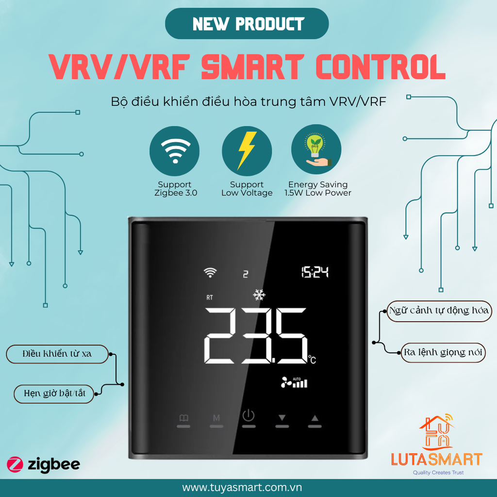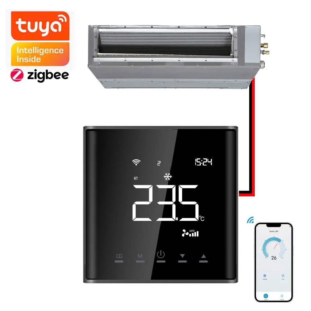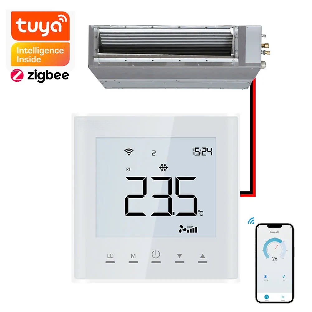 Màn hình điều khiển điều hòa trung tâm VRV/VRF - Zigbee/WiFi Tuya là một thiết bị hiện đại, được thiết kế để mang lại giải pháp kiểm soát nhiệt độ hệ thống điều hòa trung tâm một cách tối ưu cho không gian sống và làm việc của bạn.